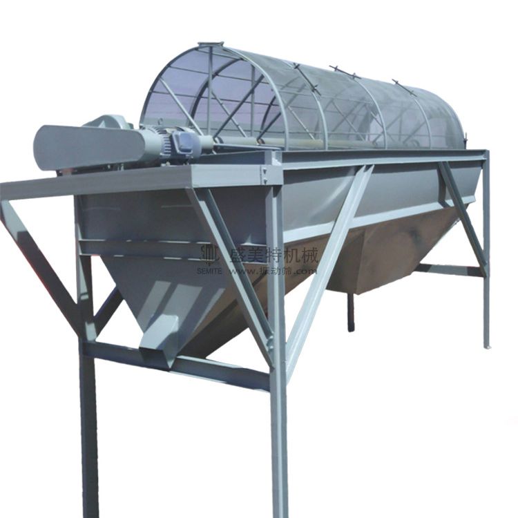 滾筒篩主要有電機、減速機、滾筒裝置、機架、密封蓋、進出料口組成。